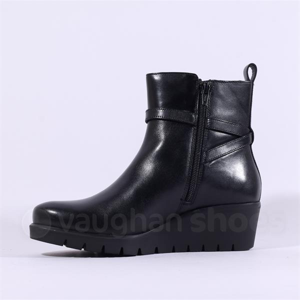 Ara Como Wedge Link Ankle Boot - Black Leather