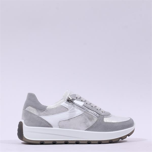 Ara New York Side Zip Laced Trainer - Grey Silver