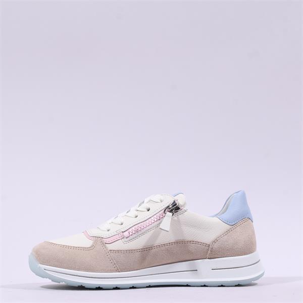 Discover the ultimate combination of style and functionality with the Ara Osaka 2.0 Internal Zip Multi Trainer in a sophisticated Cream Beige hue. Designed for comfort and versatility, this innovative trainer is perfect for both casual outings and active days.