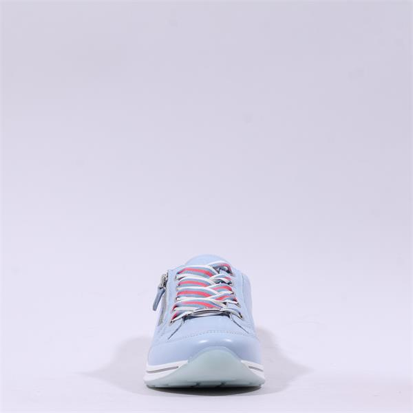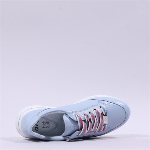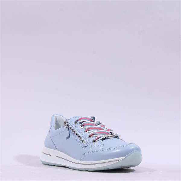 The Ara Osaka 2.0 Side Zip Lace Trainer in Baby Blue is the perfect fusion of style and comfort, designed for those who value both aesthetics and functionality. With a sleek silhouette, this trainer is a versatile addition to any wardrobe, providing a chic yet casual look for everyday wear.