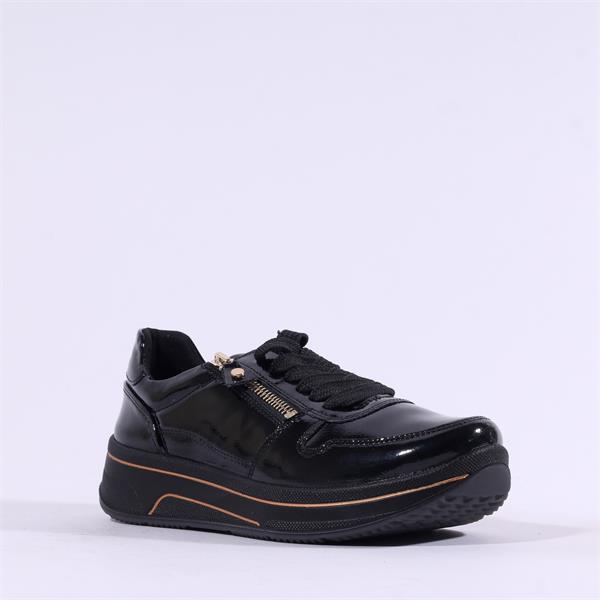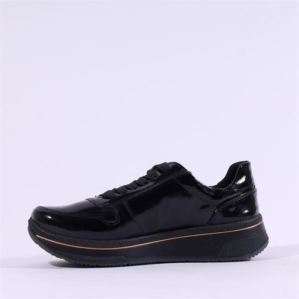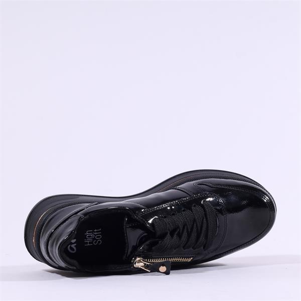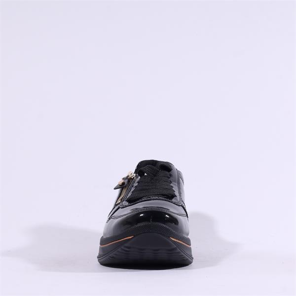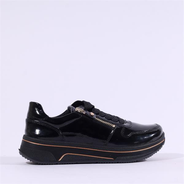 Ara Sapporo Side Zip Platform Trainer - Black Gold Patent