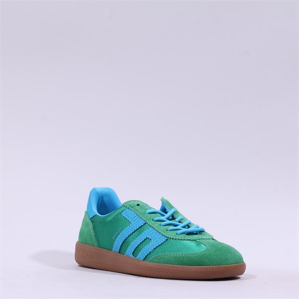 The upper boasts a light and soft nylon material, elegantly complemented with refined goat suede details. This combination not only enhances the trainer's appearance but also ensures durability.