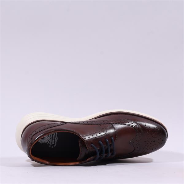 Base London Flight Laced Wingtip Shoe - Brown Leather