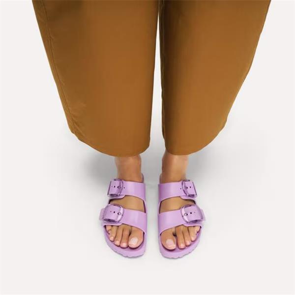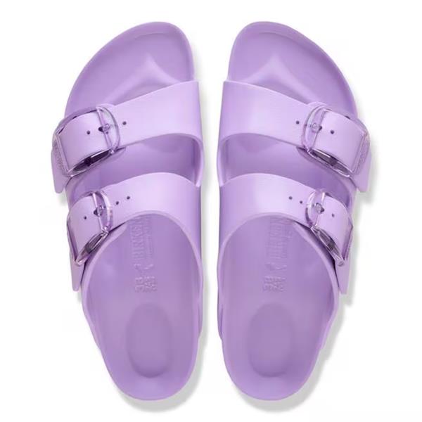 The BIRKENSTOCK Arizona is a genuine classic. Modeled on the cork sandal, this version is made from EVA. The high-quality, odor-neutral EVA has been tested for harmful substances and combines numerous positive attributes: it is very light, highly elastic, water-resistant, and skin-friendly and offers the comfort you have come to expect from BIRKENSTOCK. This version features our popular Big Buckle made from a stainless synthetic material and makes an impression with its durability and minimalist design.