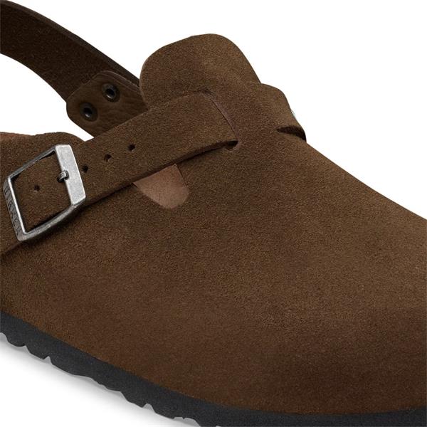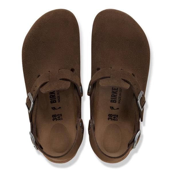 The BIRKENSTOCK Tokio clog is a variation of the classic Boston. The model is characterized by its ankle strap and can easily be worn any time of the year. The upper is made from especially soft suede which hugs the foot like a second skin.