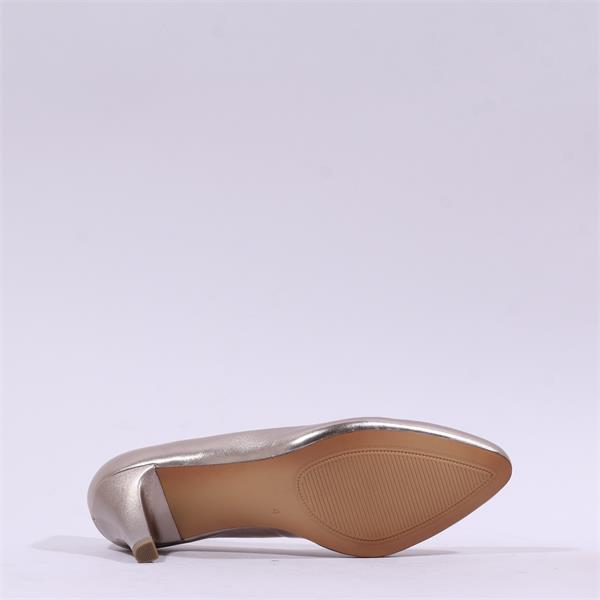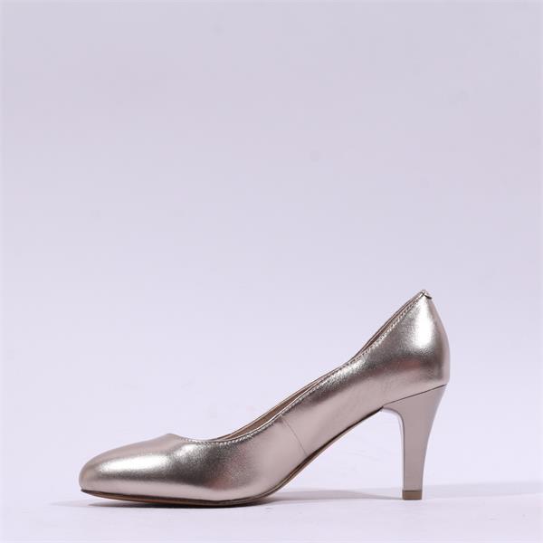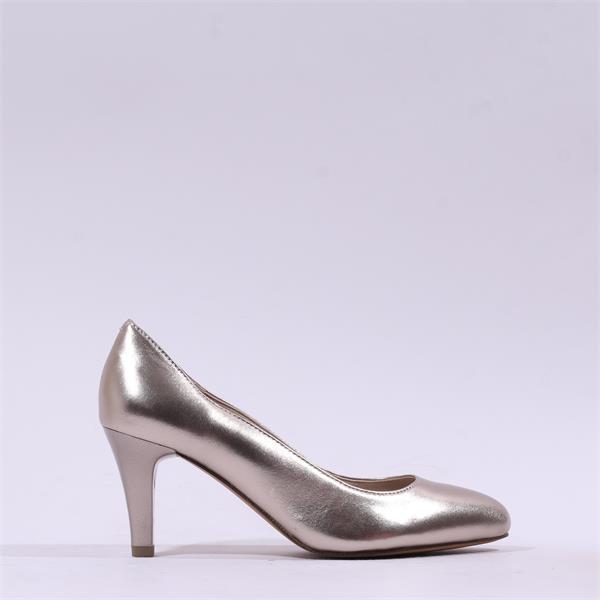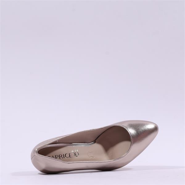 Step into elegance with the Caprice Ashley Round Toe High Heel in Taupe Metallic. These sophisticated heels perfectly blend style and comfort, making them a must-have addition to any wardrobe.