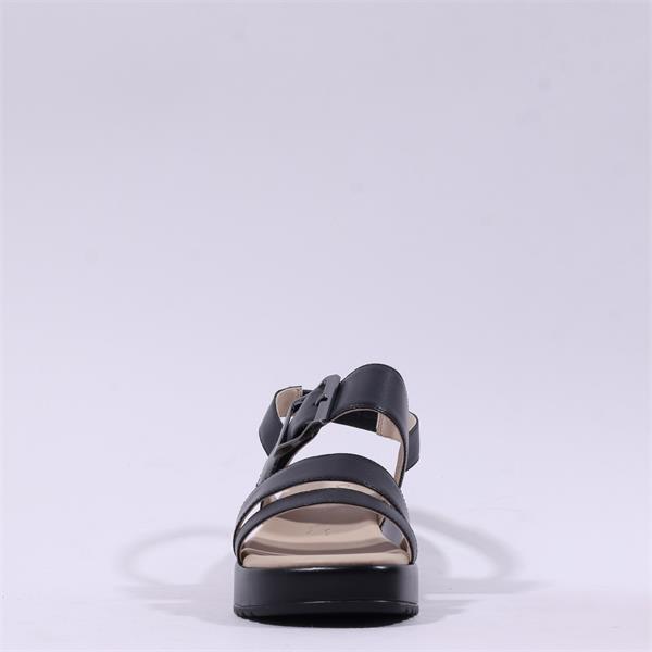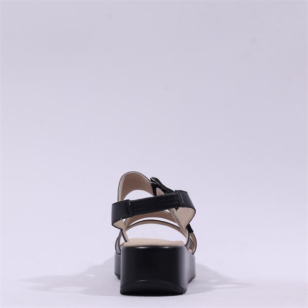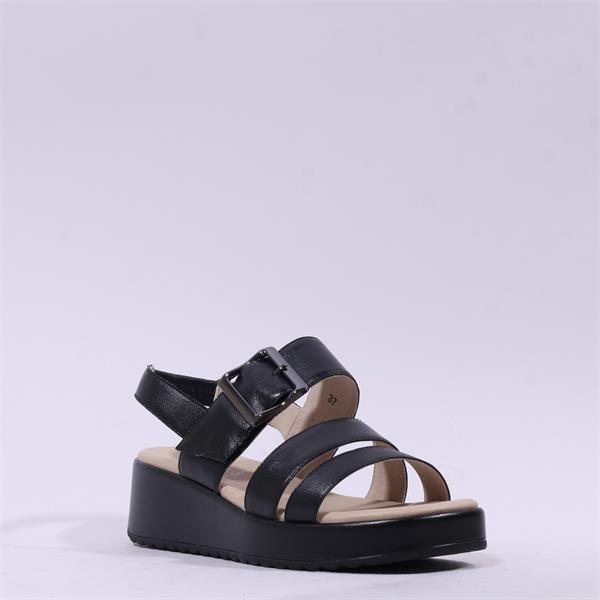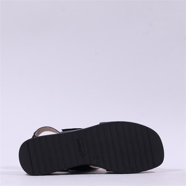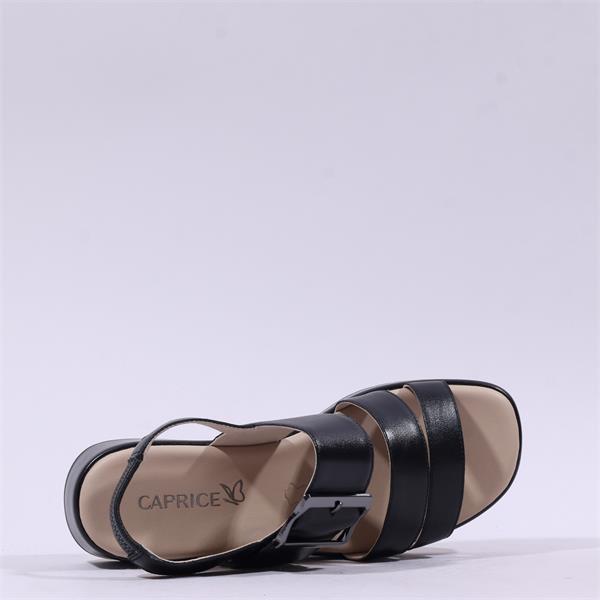 Caprice Eileen Buckle Wedge Sandal - Black Leather