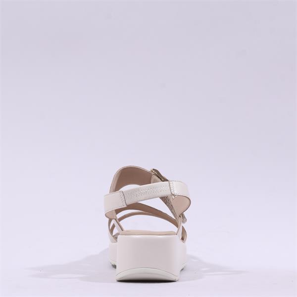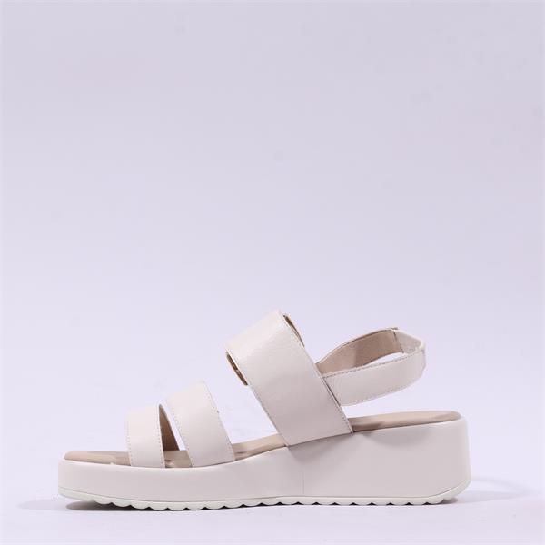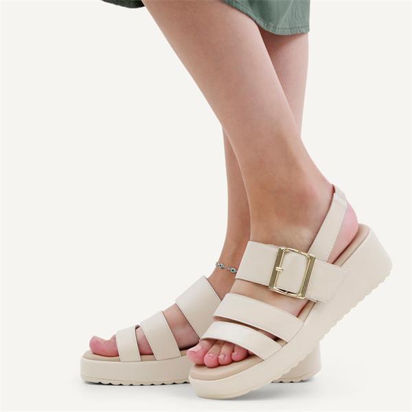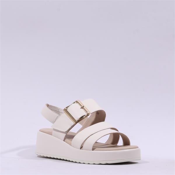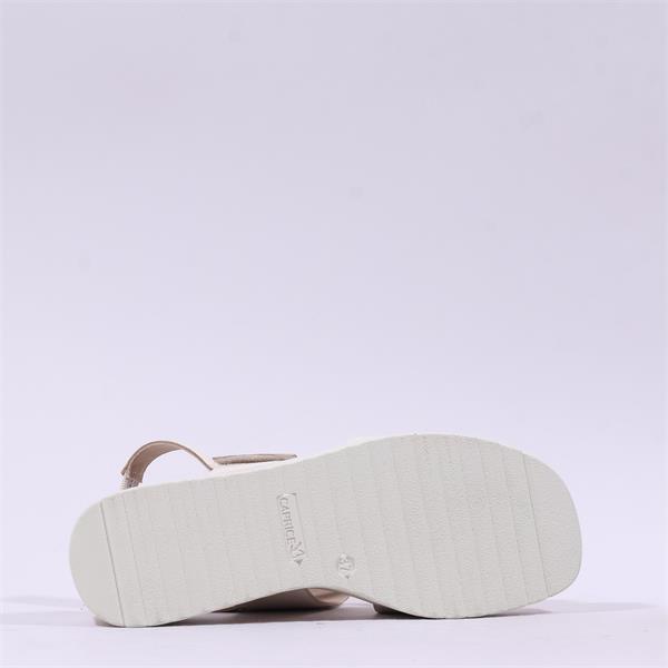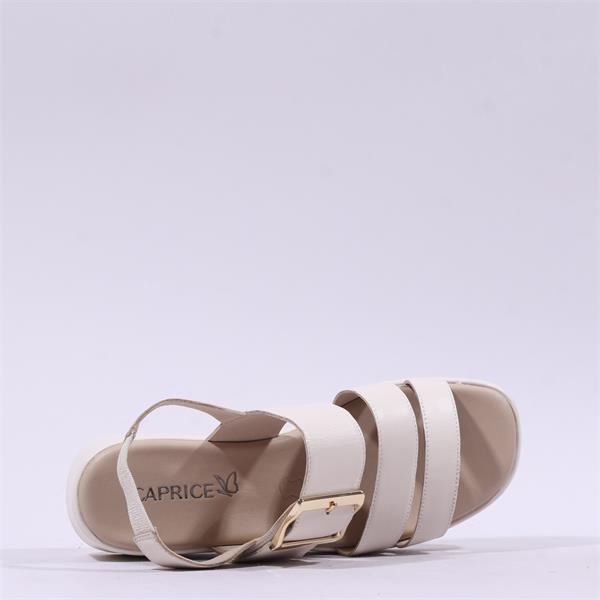Caprice Eileen Buckle Wedge Sandal - Off White Leather