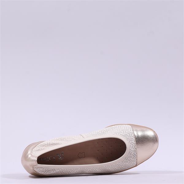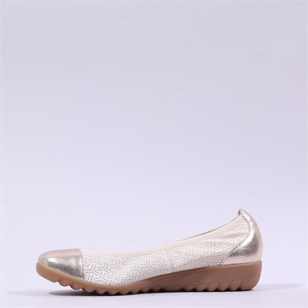 Step into comfort and elegance with the Caprice Faby Toe Cap Low Wedge Pump in a stunning Beige Gold finish. Designed for those who value both style and practicality, this low wedge pump is perfect for office wear or casual outings.