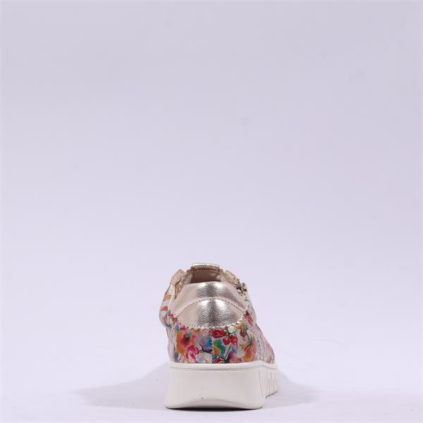 Introducing the Caprice Fina Side Zip Flex Trainer - Floral Metallic, a perfect blend of style and comfort that transcends the ordinary. Designed for the modern individual, these trainers feature a stunning floral print with eye-catching metallic accents, ensuring you step out in confidence and flair.