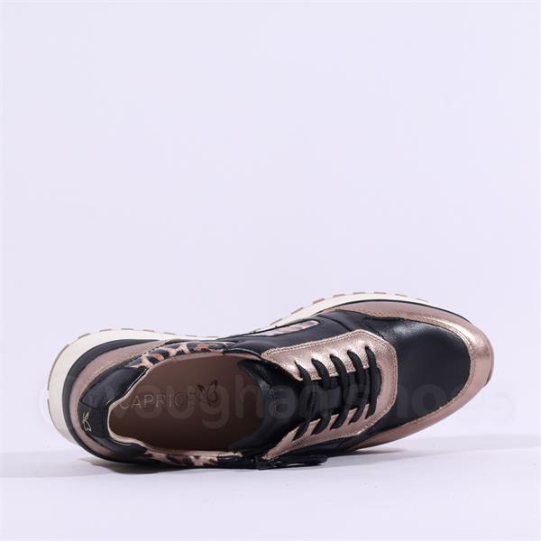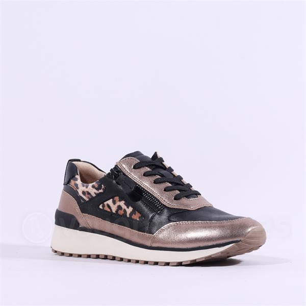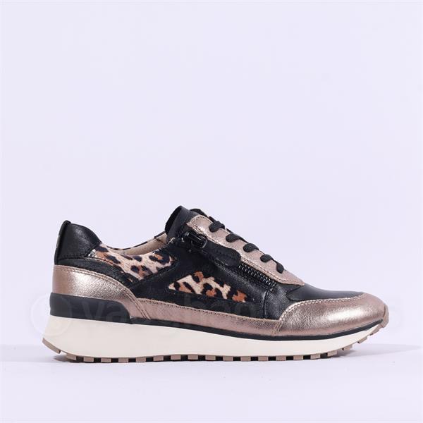 Caprice Kaia Side Zip Wedge Trainer - Taupe Black Leather