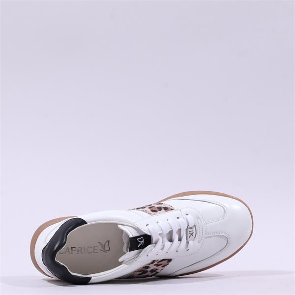 Caprice Manou Laced Gumsole Trainer - White Leopard