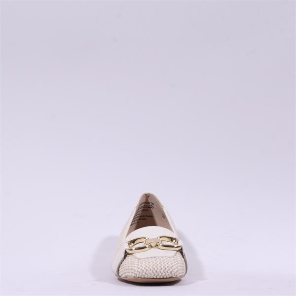 Introducing the Caprice Vanny Link Weave Loafer - Off White, an elegant addition to your footwear collection designed for both style and comfort. Crafted with precision, this loafer features a unique weave-style finish that enhances its visual appeal while offering a sophisticated look. The decorative gold link buckle adds a touch of luxury, making it suitable for both casual and formal occasions.