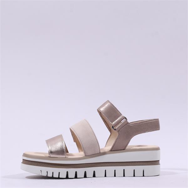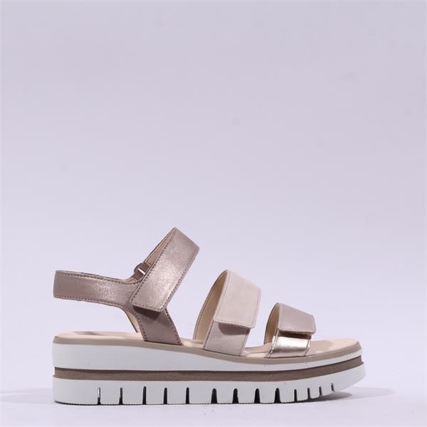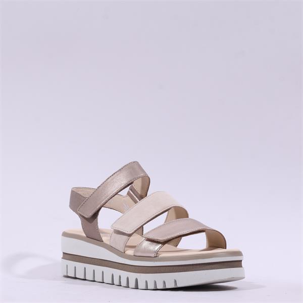 Gabor Alfa Triple Velcro Platform Sandal - Beige Metallic