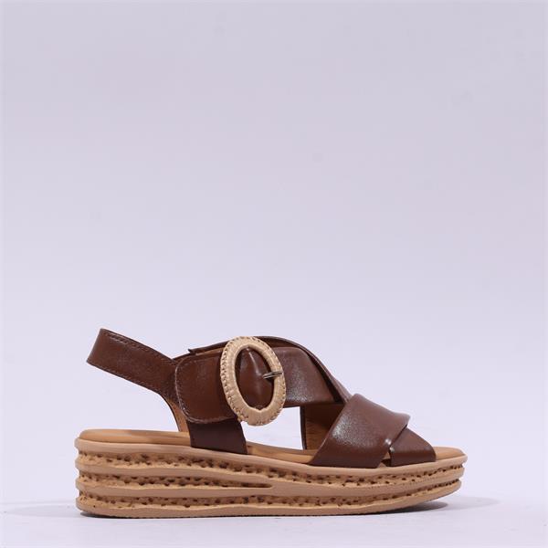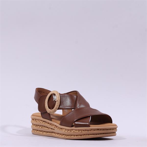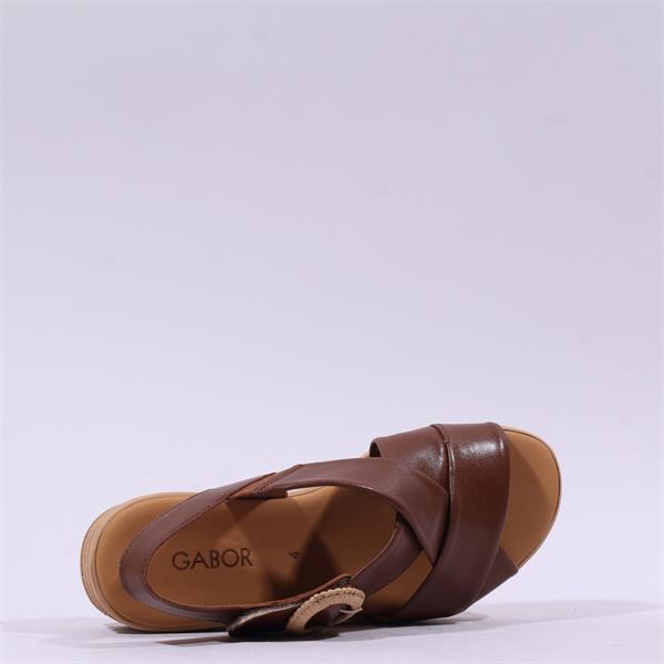 Gabor Auckland Layer Cross Wedge Sandal - Cognac Leather