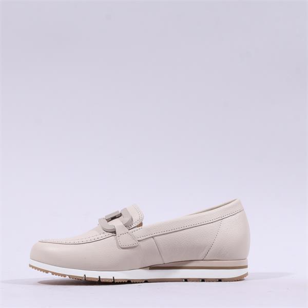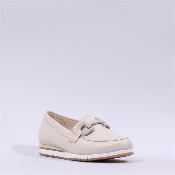 Introducing the Gabor Baby Low Wedge Link Loafer in Cream Leather, a stylish yet practical choice for every wardrobe. Perfectly blending comfort and sophistication, these loafers are designed for the modern individual who values both style and functionality.