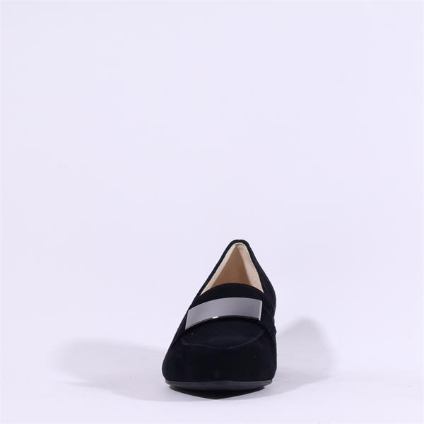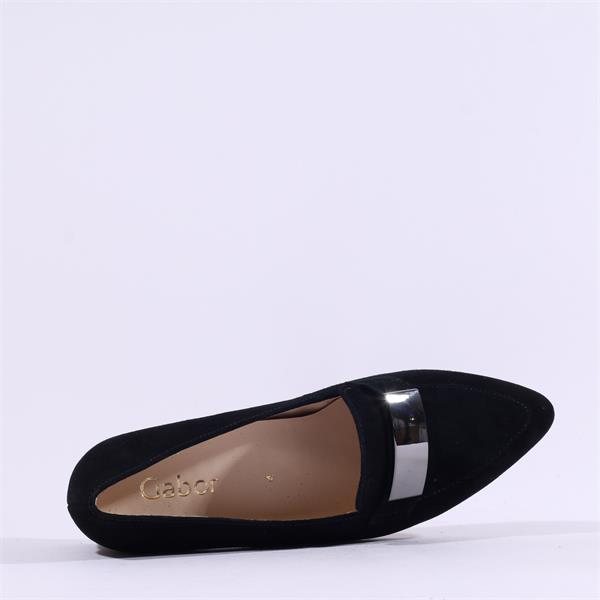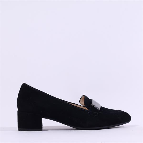 Gabor Dayana Block Heel Plate Loafer - Black Suede