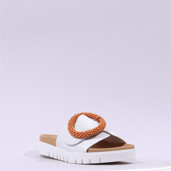 Gabor Everly Beaded Ring Velcro Mule - White Leather