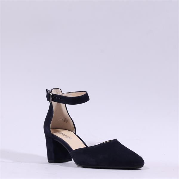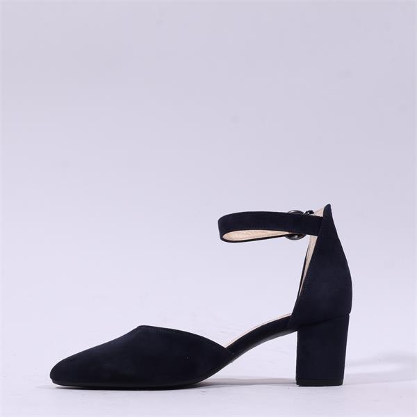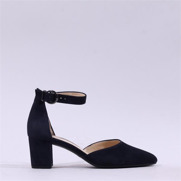 Gabor Gala Ankle Strap Block Heel Court - Navy Suede