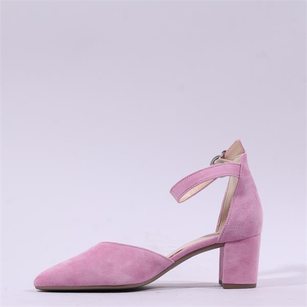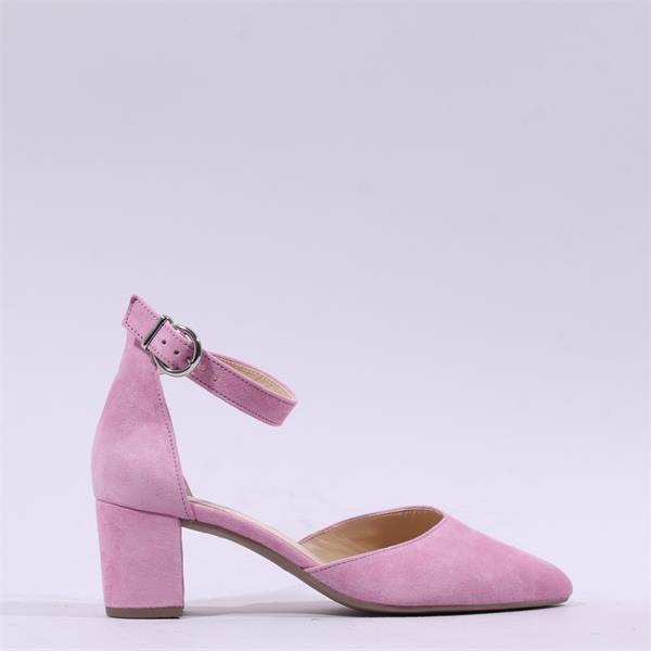 • Gabor Gala Ankle Strap Block Heel Court - Pink Suede