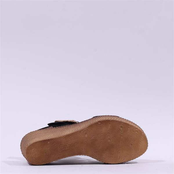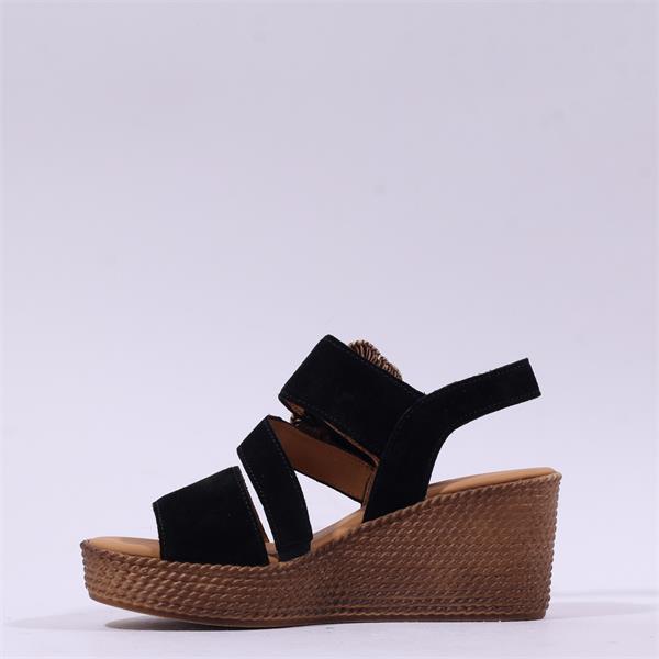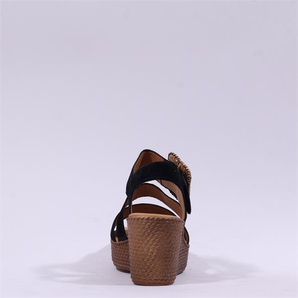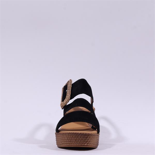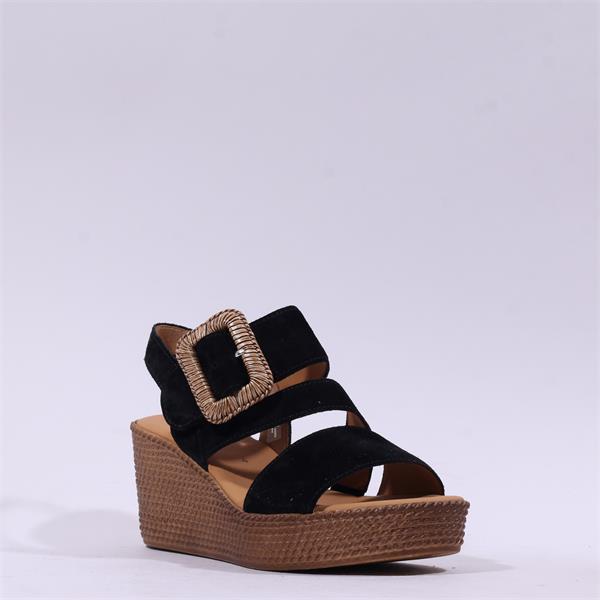 Gabor Lapel Square Buckle Wedge Sandal - Black Suede