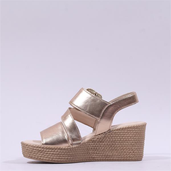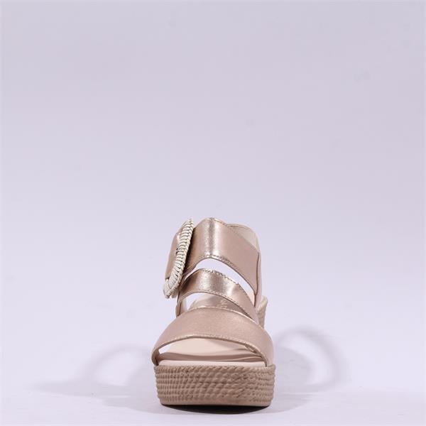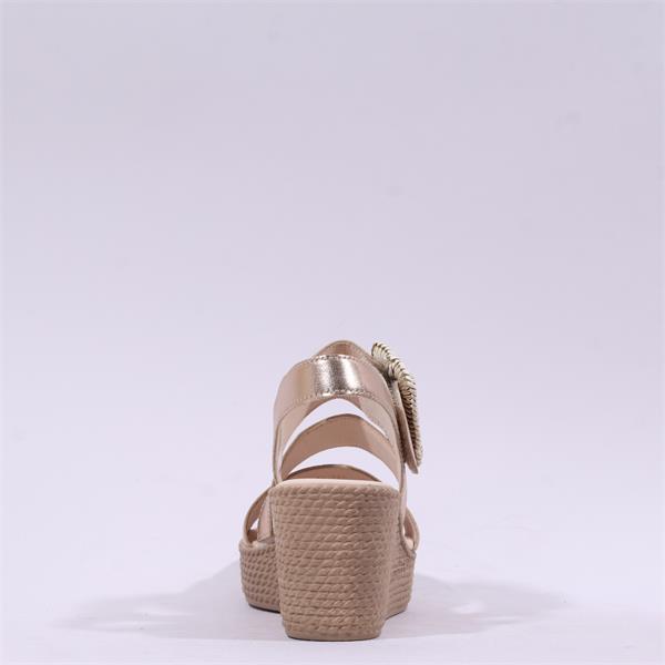 Gabor Lapel Square Buckle Wedge Sandal - Champagne