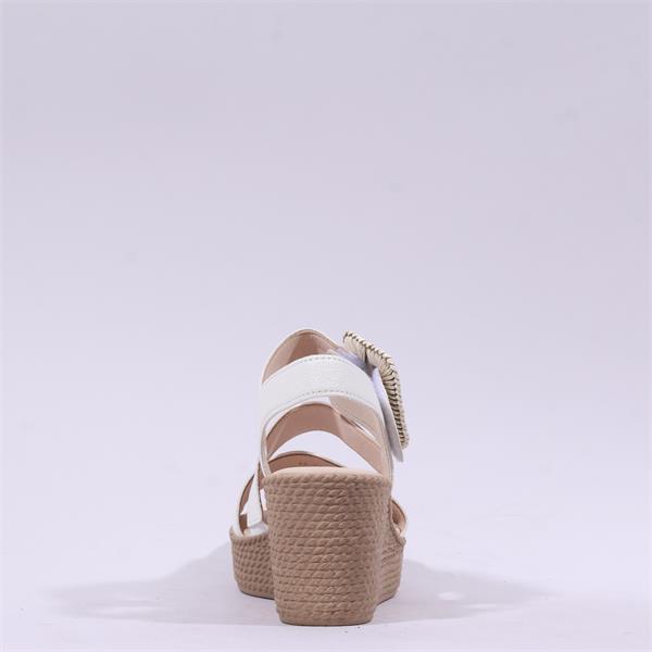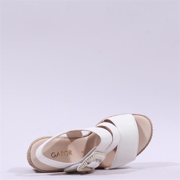 Gabor Lapel Square Buckle Wedge Sandal - Latte Leather