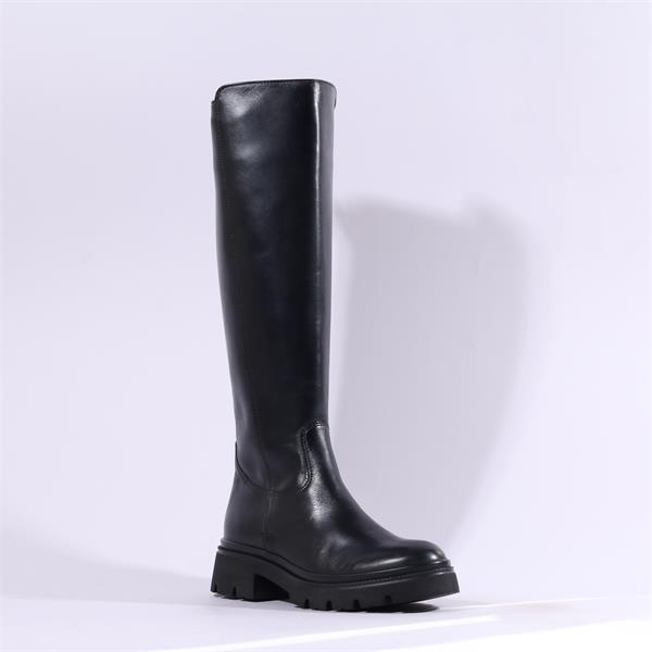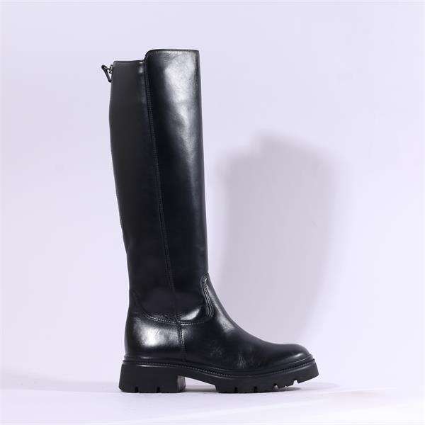 Gabor Match Chunky Rear Zip Long Boot - Black Leather