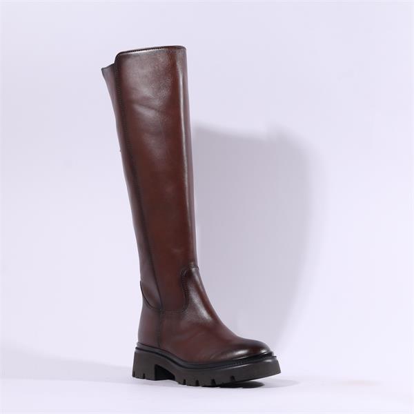 Gabor Match Chunky Rear Zip Long Boot - Cognac Leather