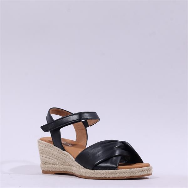 Gabor Moon Cross Espadrille Wedge Sandal - Black Leather