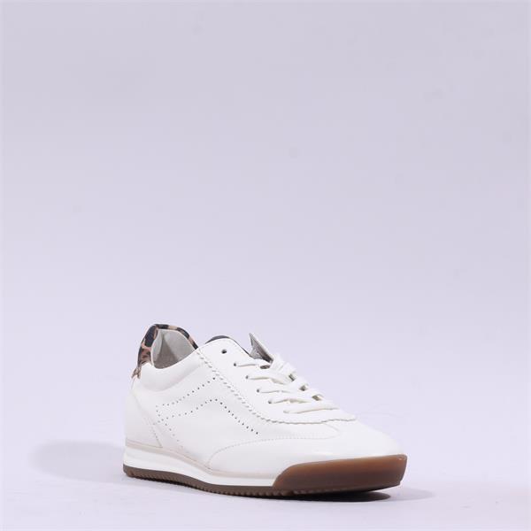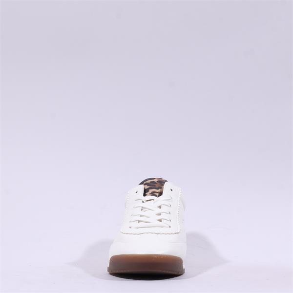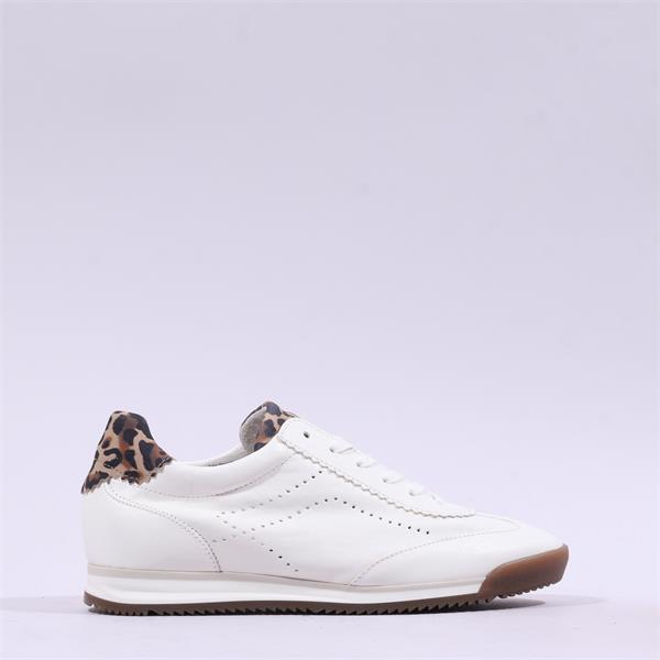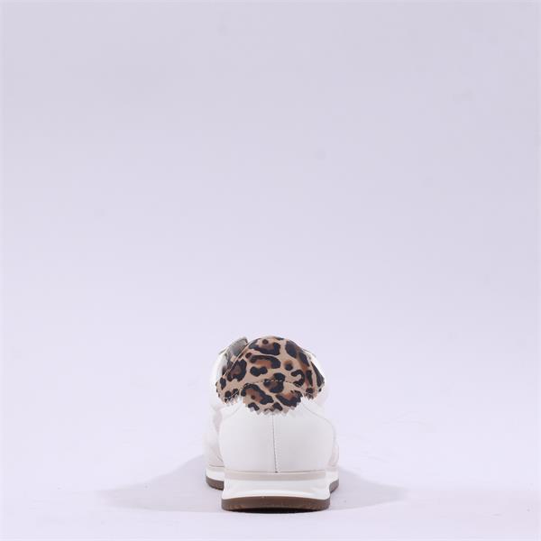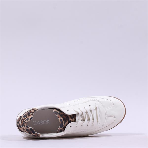 Introducing the Gabor Novice Retro Laced Trainer - White Leopard, a stylish blend of comfort and contemporary design perfect for any casual outing. Crafted with a focus on quality and sophistication, these trainers offer a unique leopard print heel collar and tongue, elevating your footwear collection with a touch of elegance.