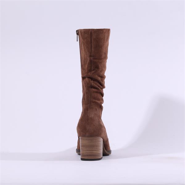 Gabor Ramona Mid Calf Ruffled Block Heel - Brown Suede