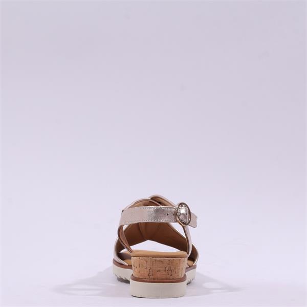 Gabor Rich Cross Low Wedge Cork Sandal - Metallic Leather