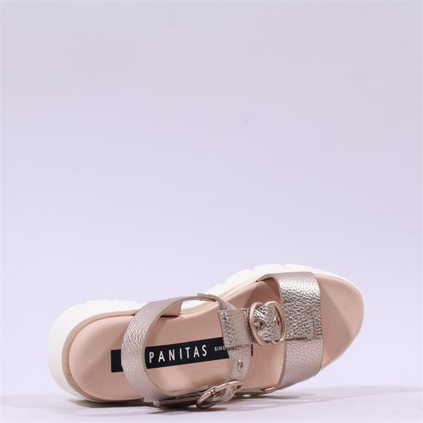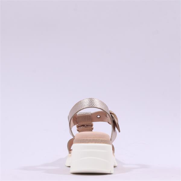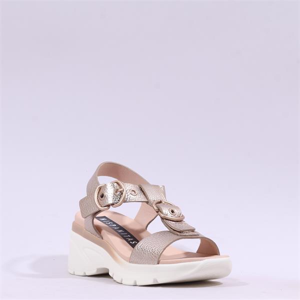 Discover the exquisite Hispanitas Cedro Ring Buckle Sandal in stylish Gold Metallic , perfect for adding a touch of elegance to your summer wardrobe. These sandals are crafted from high-quality leather, ensuring durability and a luxurious feel. With a comfortable wedge heel standing at 5 cm, these sandals provide just the right amount of height without compromising on comfort.