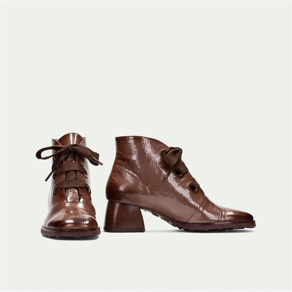 Hispanitas Marsella Block Heel Ankleboot - Taupe Patent