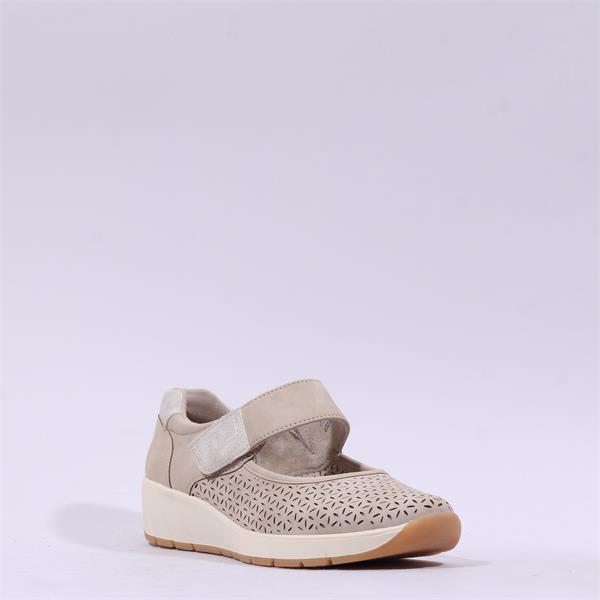 Introducing the Jana Eloq Perforated Velcro Strap Shoe in a sophisticated taupe color, the perfect blend of style and comfort for the modern, ethically-conscious shopper. Designed with a focus on accessibility and support, these shoes feature a 40mm wedge to provide you with just the right amount of elevation without sacrificing comfort.