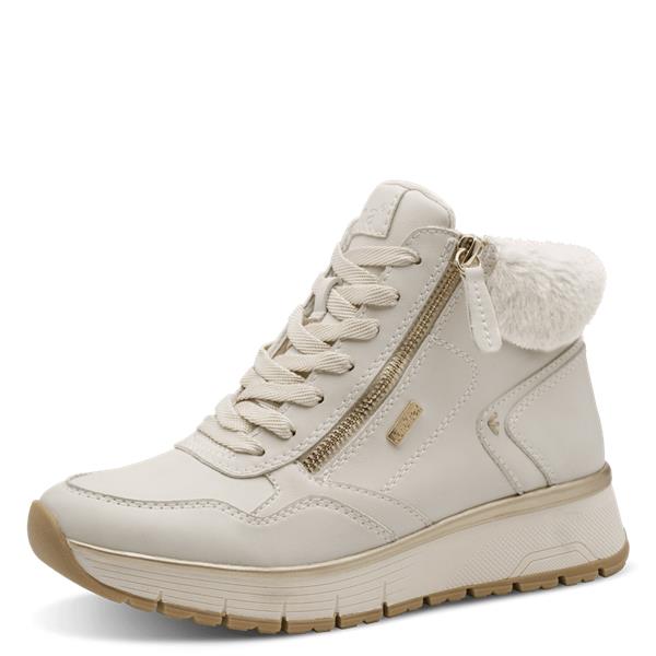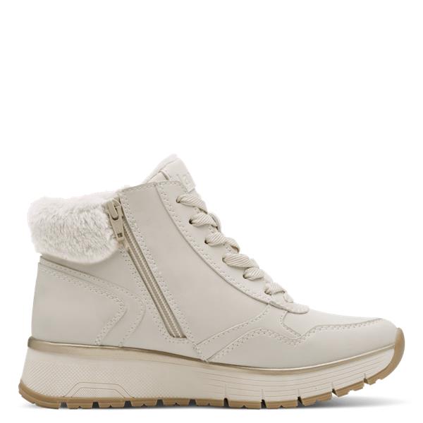 Jana Kalo Fur Cuff Low Wedge Ankle Boot - Ivory