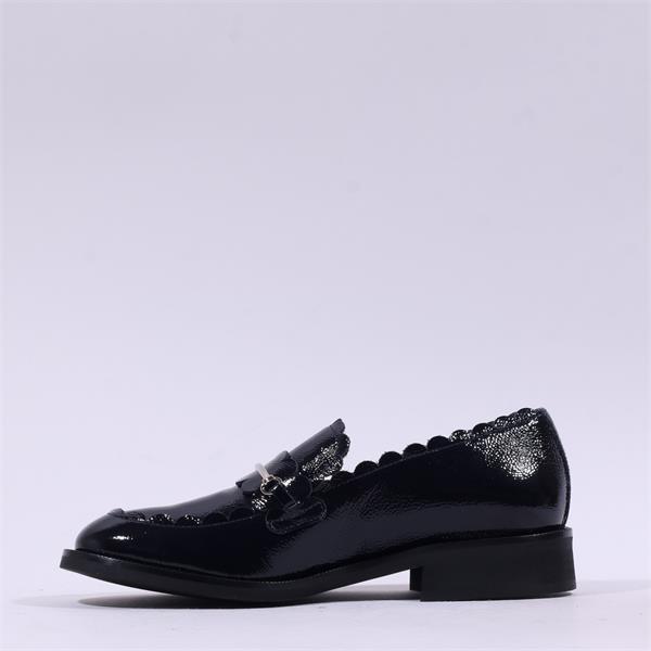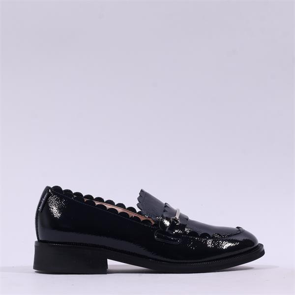 Marco Moreo Maura Frill Slip On Loafer - Navy Patent