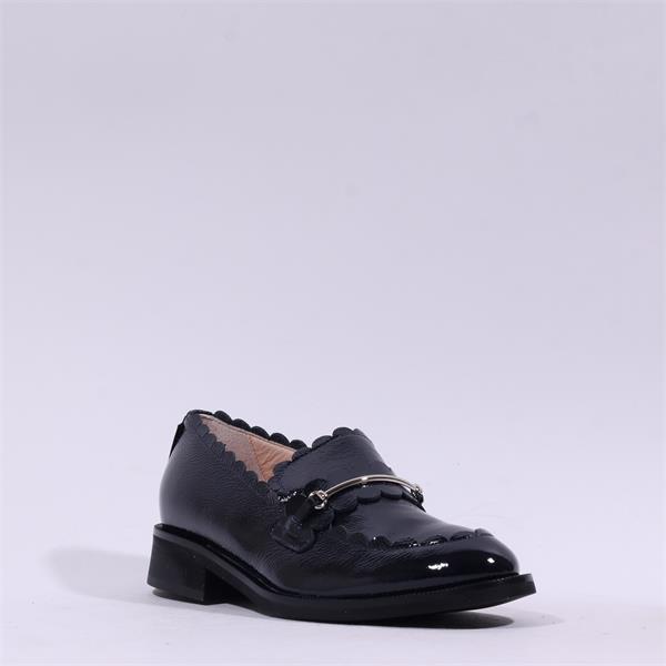Crafted with premium materials, the Maura Frill Slip On Loafer offers an exquisite blend of fashion and practicality. The patent upper material not only enhances its visual appeal but also ensures durability and ease of maintenance.