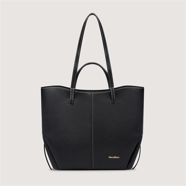 Introducing the Marco Moreo Meazza Tote Bag in sleek black leather, a perfect blend of style and functionality designed for the modern individual. This exquisite tote bag effortlessly complements any outfit, making it a must-have accessory for both casual outings and formal occasions.