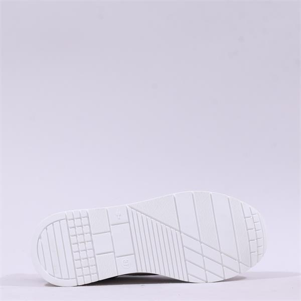 Contemporary and refined, this platform slip-on sneaker combines sporty comfort with elevated style. Crafted from smooth laminated leather, it features contrasting laminated panels and subtle metallic accents that add a modern, luminous touch to the design.