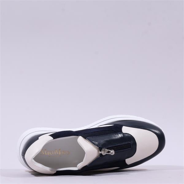 Elevate your footwear collection with the Marco Moreo Pompei Front Zip Platform in stunning Navi Combi. Expertly designed for both style and comfort, these wedges are perfect for day-to-night transitions.