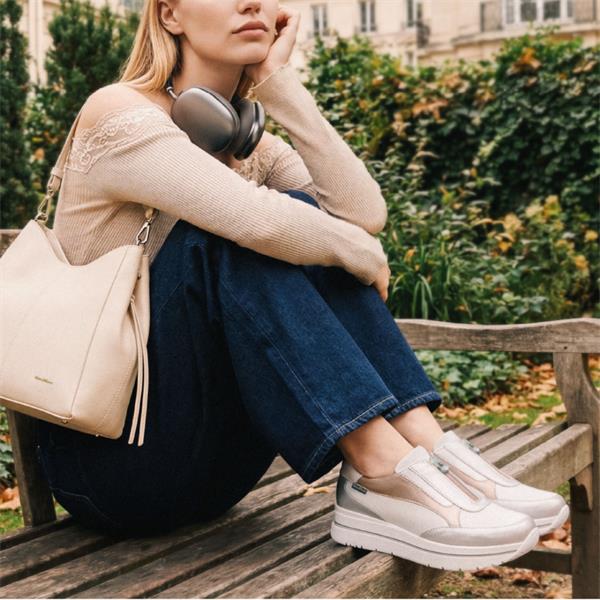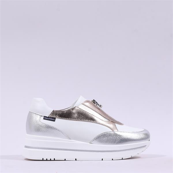 Elevate your footwear collection with the Marco Moreo Pompei Front Zip Platform in stunning white gold silver. Expertly designed for both style and comfort, these wedges are perfect for day-to-night transitions.