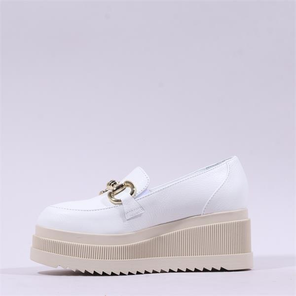 Step into sophistication with the Marco Moreo Stockholm Link Platform Shoe in an elegant White Gold Leather  Crafted for the modern individual, these shoes combine style and comfort, making them a versatile addition to any wardrobe.