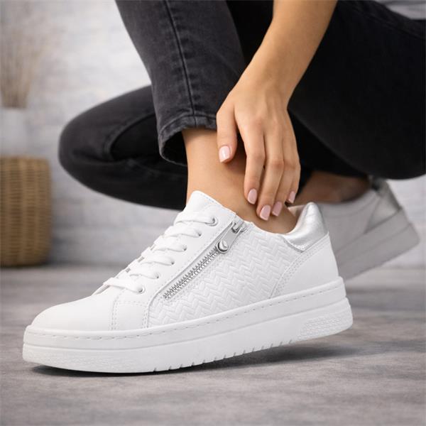 Marco Tozzi Ago Side Zip Trainer - White Combi