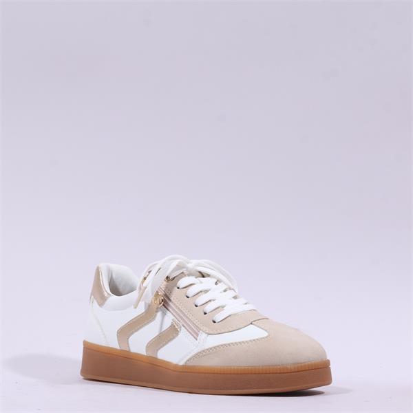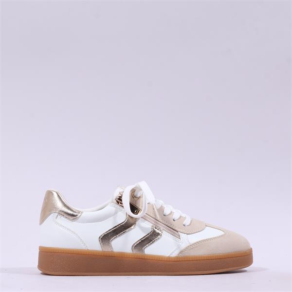 The Marco Tozzi Bargi Sidezip Gum Trainer in White Gold is the perfect blend of style and comfort for everyday wear. With a modern design and thoughtful features, these trainers cater to both aesthetics and functionality.