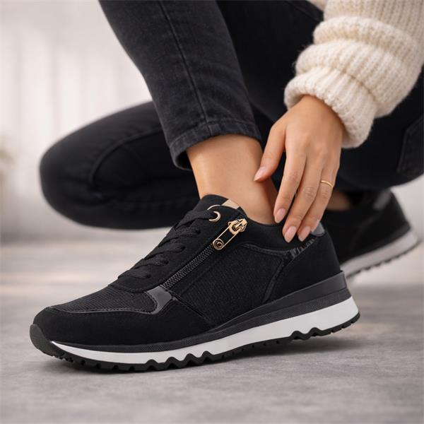 Discover the perfect blend of style and comfort with the Marco Tozzi Bonallo Side Zip Trainer in Black Copper. Designed for the modern individual, these trainers are not just footwear, but a statement of sustainable choice.