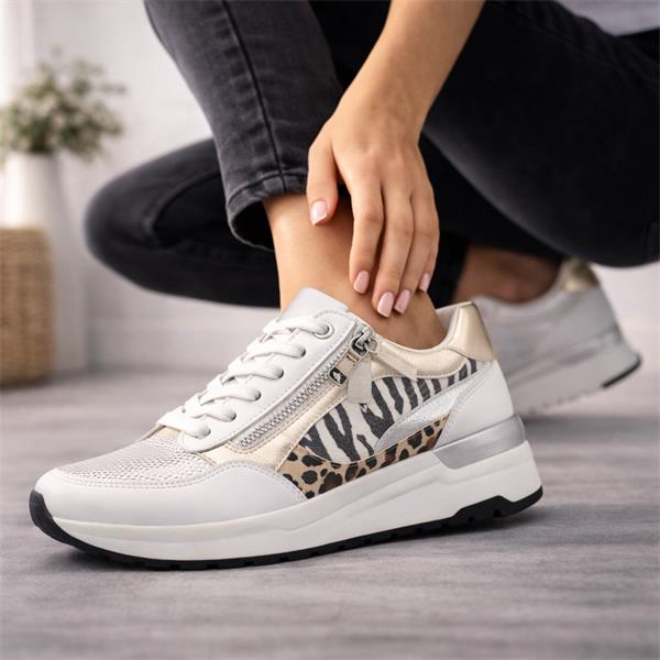 Marco Tozzi Damen Side Zip Wedge Trainer - White Print Combi