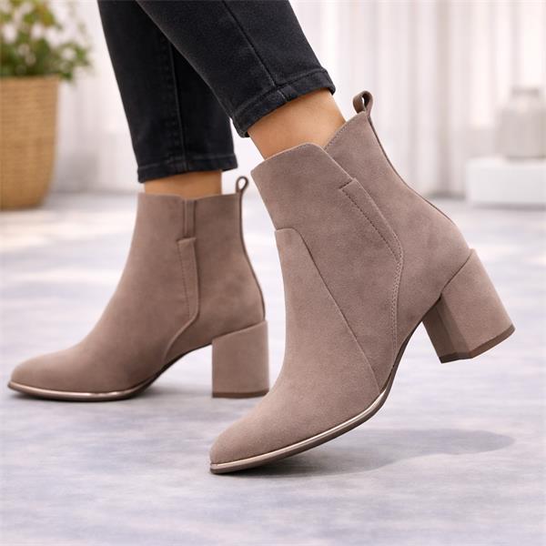 Discover the perfect blend of style and comfort with the Marco Tozzi Delo Block Heel Ankle Boot in Pepper. These chic ankle boots are crafted from synthetic suede. The block heel design not only enhances your height but also provides stability for all-day wear.