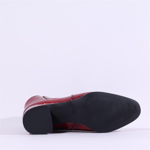 Crafted with a premium synthetic upper material, these boots are not only stylish but also durable. The sleek red patent finish gives them a sophisticated touch, ensuring you look chic whether you're heading to the office or out for an evening event.